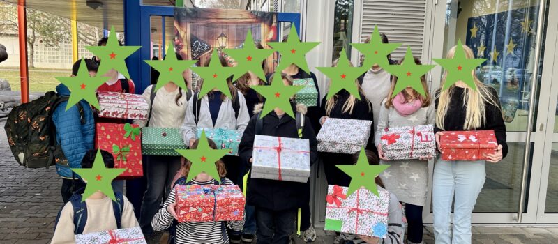 S2L2 and S3L3 English made Christmas boxes for children in Ukraine. The boxes were filled with books, sweets, games, toiletries, socks, gloves, footballs, and items for school.