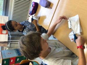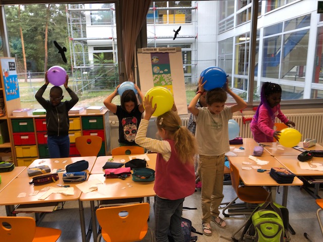 Dans le cadre du cours de Découverte Du Monde, les élèves de Mme Hamen ont réalisé une expérience pour comprendre le phénomène de l’électricité statique. Dans des mouchoirs, ils ont d’abord découpé des petits fantômes. Puis ils ont gonflé des ballons de baudruche qu’ils ont frottés sur leurs cheveux ou sur leur pull. En approchant les ballons des petits fantômes, ces derniers semblaient danser et voler avant de se coller au ballon du fait de l’électricité statique!