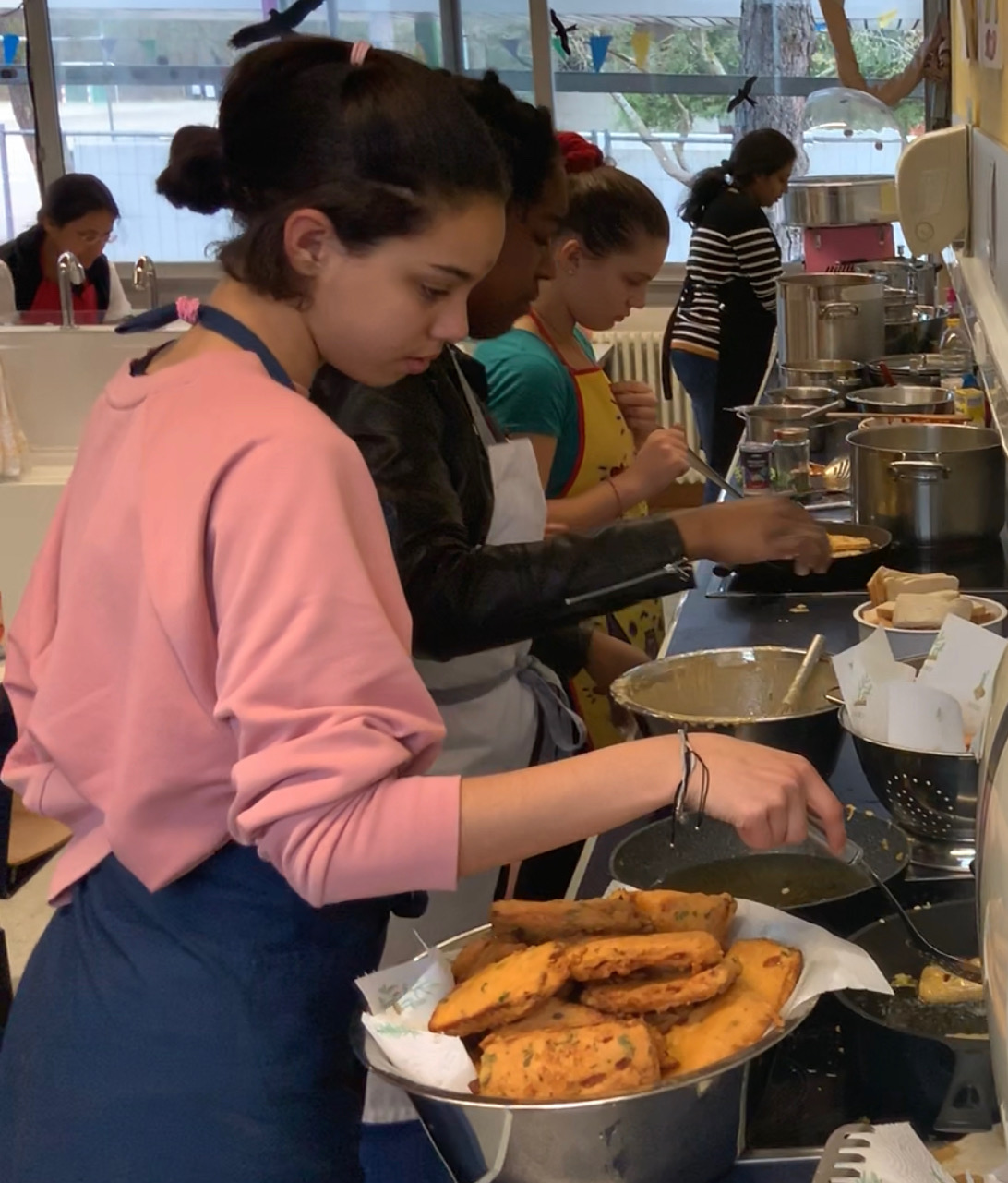 Days for Girls is a worldwide charity which provides femine hygiene kits and health education to girls in need. In order to raise money for charity we cooked an Indian lunch with the kind help of 5 Indian mothers and our teachers (Mrs Thomson, Mrs Klingner-Bähr and Mrs Ecker). We served around 100 lunches to staff and students and raised €850 for the charity. This money will help girls in India and Nepal. We also made crocheted baskets to sell and installed a pad and tampon dispenser in the girls‘ toilets as part of our project. We enjoyed the Indian cooking and the team work very much. Thank you to all our supporters.