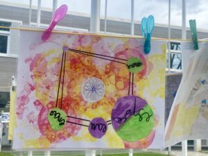 La section française a exposé ce jeudi ses œuvres sur le thème des Bulles pour participer à la GRANDE LESSIVE du mois de mars. Plus de 100 œuvres étaient étendues devant