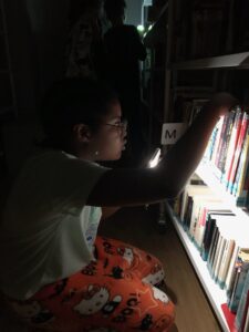 Der Kern des Projekts für unsere französischsprachige S1-Klasse besteht darin, die Lust am Lesen zu wecken, aber auch die Schülerinnen und Schüler dazu zu bringen, sich in der Sekundarschule wohlzufühlen, und ihnen zu helfen, einen Gruppengeist zu entwickeln. In diesem Jahr hatten wir die große Ehre, den Autor der Maldoror-Trilogie, Philippe Lechermeier, zu Gast zu haben. Der Abend begann mit dem Bau von Lesehütten, die der Fantasie von Herrn Grandjanin entsprangen (eine Anspielung auf die Lesehütten, die in einem früheren Projekt im Wald gebaut worden waren). Anschließend fand unser erstes „Lesekonzert“ statt, eine Mischung aus Lesung (durch den Autor selbst, der für diesen Anlass zum Dirigenten wurde) und Konzert (die Kinder improvisierten eine musikalische Begleitung). Zum Abschluss begaben sich die Kinder in der abgedunkelten Bibliothek auf eine rätselhafte Schatzsuche inmitten der Regale. Anschließend fielen wir in Morpheus‘ Arme, um am nächsten Morgen mit dem Duft einer heißen Schokolade aufzuwachen. Mission erfüllt: Unsere 2024-Nacht hat es uns ermöglicht, nicht nur über Abenteuer zu reden, sondern auch selbst welche zu erleben!