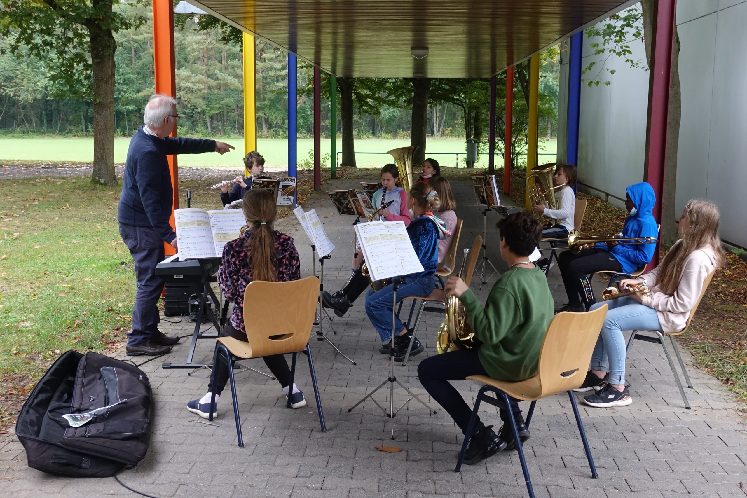 Bläserklasse S1 bei den Vorbereitungen zum Weihnachtskonzert,
