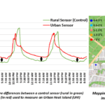 The school grounds served as a control point, allowing students to compare the data collected from different environments. They also took panoramic photographs at each site to connect the temperature readings with visible environmental features such as vegetation and building density.